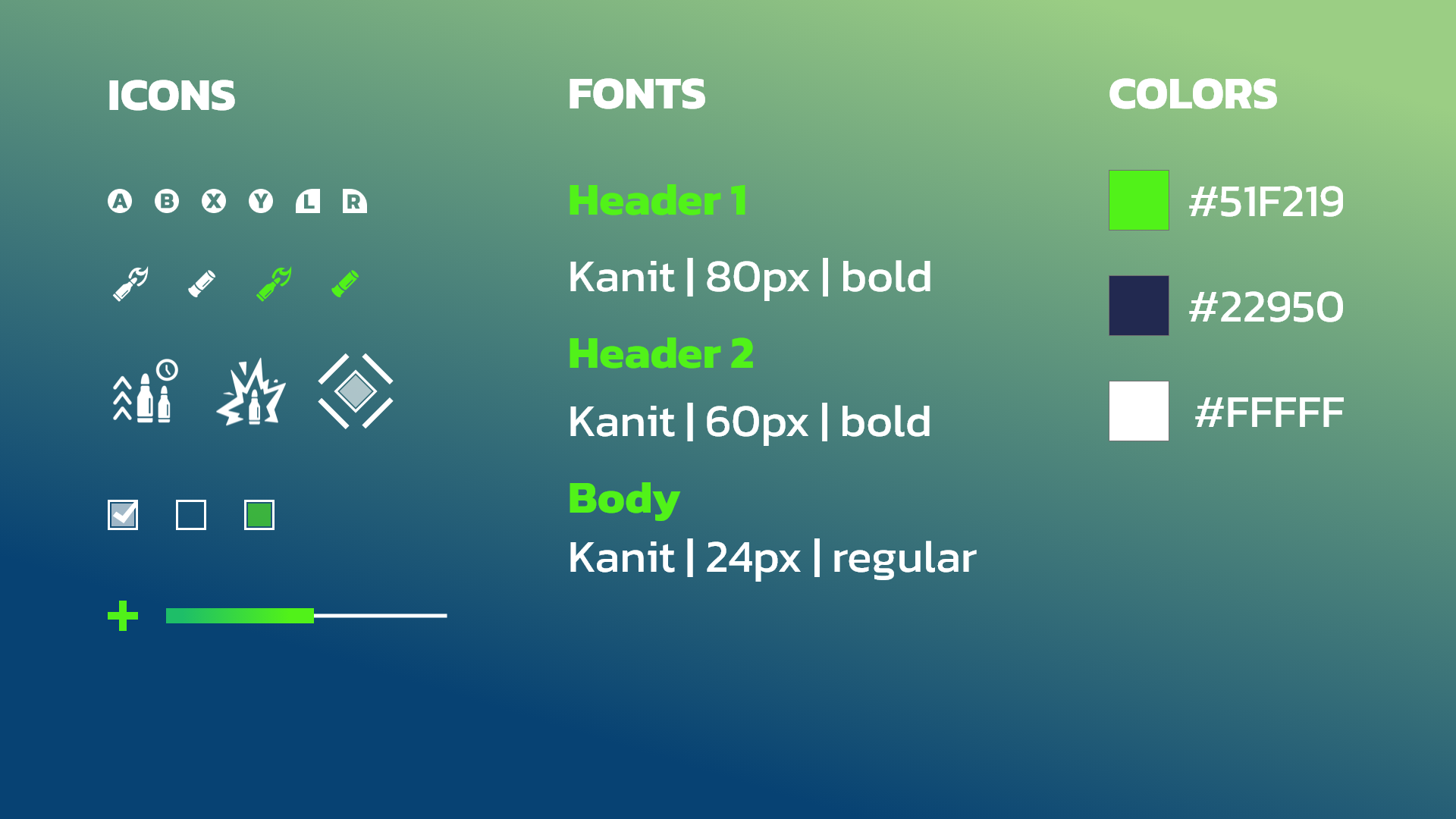 The brief encouraged to keep accessibility features in mind. I oriented my decisions for font size at the Game Accessibility Guidelines and used the contrast checker website to make sure my design is readable. These are the approaches I keep in check with every UI Design.